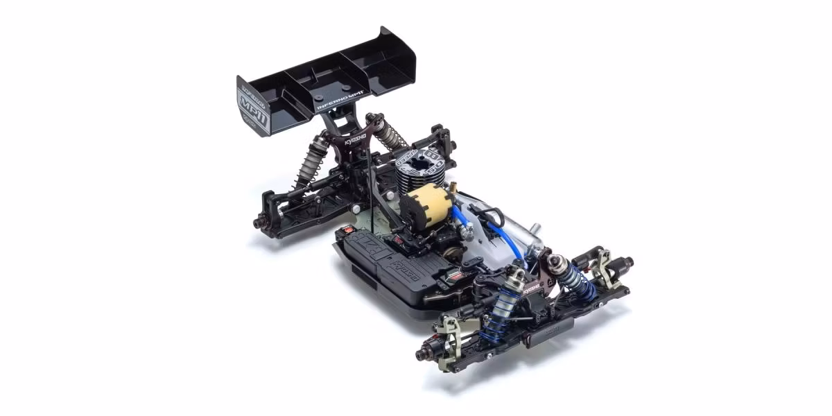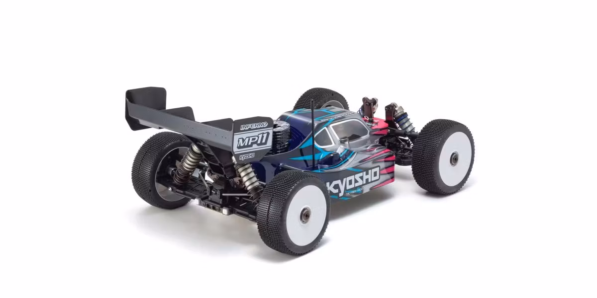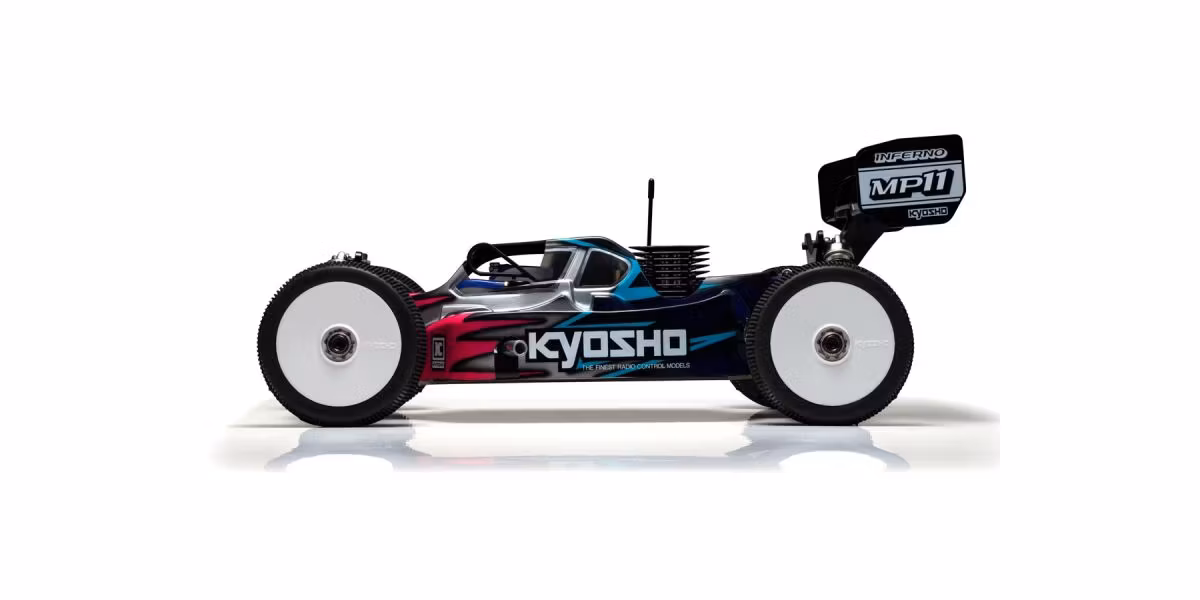 The 1/8-scale GP buggy Inferno series stands tall as Kyosho’s flagship R/C car line, not only winning multiple world championship titles but also delivering the pure thrill of driving at the highest level. Now, the legacy continues with the debut of the next-generation MP11—the first full model change since the MP10 launched in January 2019. While continuous updates have kept the MP10 at the forefront of global competition, the MP11 takes a bold leap forward with an all-new design. Key changes include a newly developed main chassis, revised suspension and drivetrain systems, and an all-new body—all engineered for elite racing performance. One of the most significant changes is the revised front/rear weight distribution. With a more front-biased balance compared to the MP10, the MP11 delivers remarkably smooth handling that reduces driver stress. Coupled with optimized suspension geometry, the MP11 also achieves higher cornering speeds. The range of adjustable settings has been greatly expanded, and workability has been significantly improved—critical advantages for adapting to different track sizes and surfaces around the world. The MP11 also debuts a completely redesigned body and a new rear wing with matching wing stays, offering high-level aerodynamic performance perfectly tuned to the chassis. Carrying the Inferno legacy into a new era, the MP11 doesn’t just aim to win—it’s built to elevate every aspect of the racing experience, from setup to performance to the pure thrill of commanding one of the finest machines on the grid.
